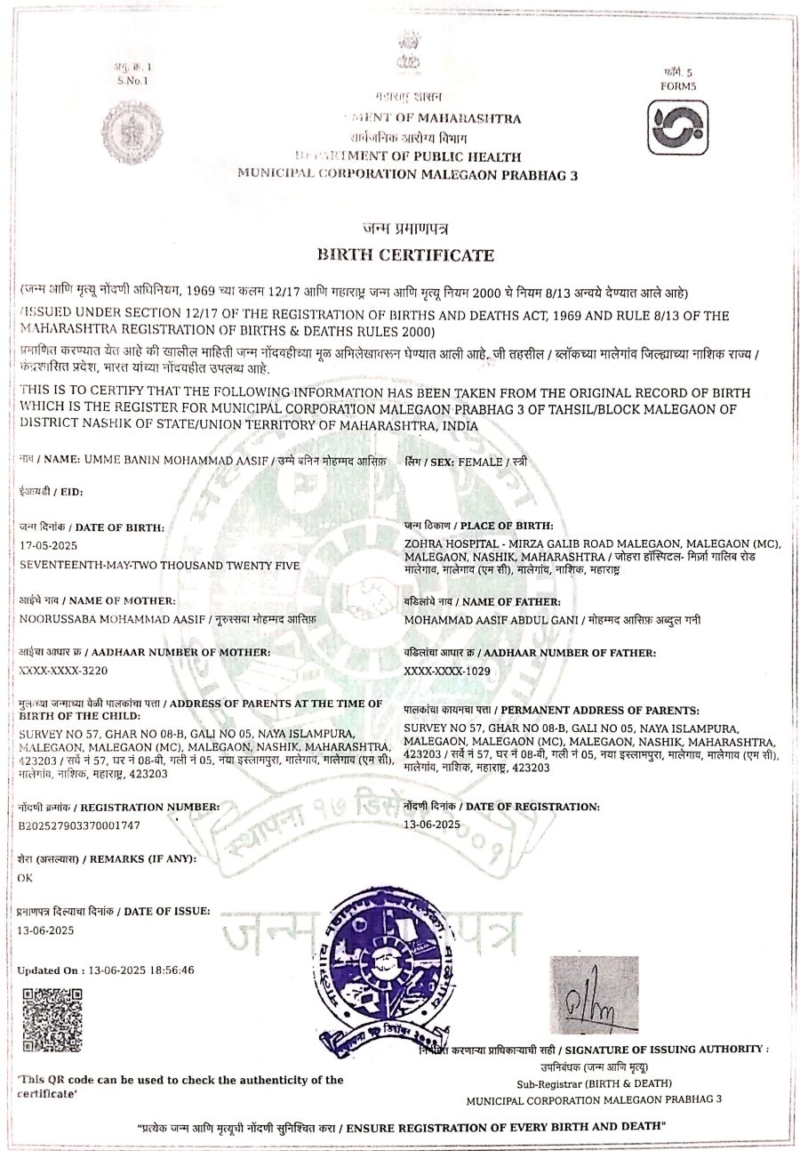 Umme Banin Mohammad Aasif (5 Months/Female)
